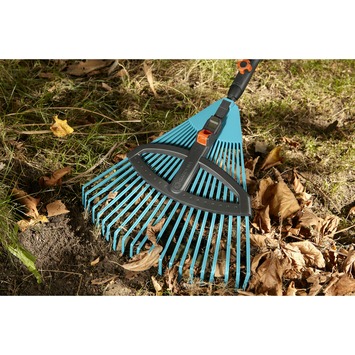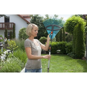 De Gardena combisystem kunststof verstelbare bladhark is ideaal voor het bijeenharken van bladeren, grasresten en ander tuinafval. De werkbreedte is eenvoudig instelbaar van 35 tot 52 cm, voor het bijeenharken van fijn of grof materiaal. De verstelbare bladhark is te gebruiken in combinatie met alle Gardena combisystem stelen. Een lengte van 130 of 150 cm, afhankelijk van de lichaamslengte, is ideaal. Je krijgt 25 jaar op deze combisystem bladhark.