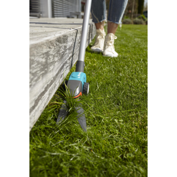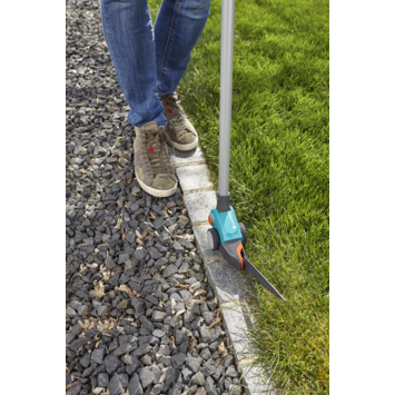 De Gardena Comfort Grasschaar maakt het knippen van grasranden eenvoudig. Door de steel heb je de mogelijkheid om rechtop te blijven staan en hou je een goede werkhouding. Met de telescopische steel kan je de lengte eenvoudig aanpassen en met de wielen is het sturen met de grasschaar eenvoudig.Het ergonomische handvat geeft veel comfort en ligt lekker in de hand. Om een perfect snijresultaat te bereiken heb je de mogelijkheid om de messen, met een anti-kleef coating, 90 graden naar links of rechts te draaien. Krachtig knippen over de gehele meslengte is mogelijk met de speciale meslager.