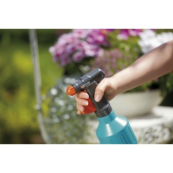 De Gardena Comfort plantenspuit is een veelzijdige handsproeier voor huis en tuin. De plantenspuit ligt perfect in de hand en de sproeimond is traploos verstelbaar van een volle straal tot fijne sproeinevel. Dankzij de grote vulopening kan je deze plantenspuit met een inhoud van 1 liter makkelijk vullen onder de kraan en dankzij de filter in de aanzuigbuis is de sproeimond beschermd tegen verstopping. Mooi meegenomen: de plantenspuit heeft een zichtbaar vloeistofpeil dat je eenvoudig kan aflezen zonder de spuit te moeten openen.