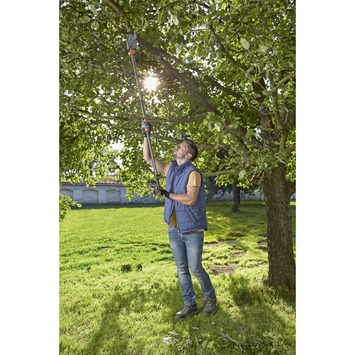 De Gardena takkenschaar comfort 160 BL heeft een licht gewicht, maar een hoog bereik. Dankzij de verstelbare snoeihoek (tot 200°) kan jij je takken altijd gericht knippen. Meer nog: je kan je takken in elke groeirichting snoeien, ook bij dichtbegroeide struiken. Door de lengte van 160 cm en de extra T-handgreep voor nog meer bereik kan je zelfs hoge bomen zonder ladder bereiken.