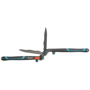 De 2-in-1 EnergyCut heggenschaar van Gardena maakt indruk met een tweedelige versnelling, modern design, uitstekende snijkracht, ergonomische vorm en laag gewicht. De stevige, gekartelde messen, de ergonomisch gevormde kunststoffen handgrepen en een perfecte werkhoek van 20° zorgen voor een bijzonder comfortabele houding tijdens het werken. De geïntegreerde trimmer maakt het mogelijk om dikkere takken eenvoudig te knippen. De geïntegreerde stopbuffers beschermen de polsen. Het handvatmateriaal is, net als alle andere elementen van de heggenschaar 2in1 EnergyCut, bijzonder stabiel en duurzaam. De totale lengte van de heggenschaar is 60 cm.