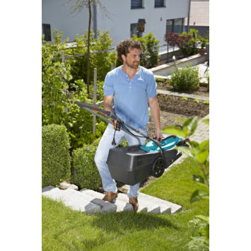 GARDENA PowerMax 32E is een wendbare, lichtgewicht grasmaaier die ideaal is voor het maaien van kleinere gazons. Het speciaal geharde mes staat voor een optimaal snijresultaat. Het ErgoTec hadvat ligt comfortabel in de hand en maakt het eenvoudig om de grasmaaier te duwern. Het instellen van de maaihoogte kan eenvoudig centraal versteld worden in 10 standen dankzij de QuickFit-fuinctie. Extra graskammen aan de zijkanten zorgen ervoor dat ook het gras langs muren en stoepranden perfect wordt gemaaid. Het CNC-systeem staat bovendien voor efficiënt snijden en opvangen. Dankzij het opvouwbare frame is de grasmaaier gemakkelijk te vervoeren en compact op te bergen.