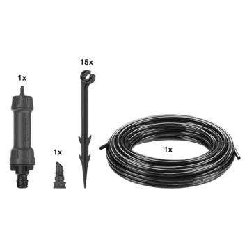 De GARDENA starterset voor 15 meter rijplanten maakt slim water geven makkelijk. De set bevat een druppelbuis van 15 meter met om de 30 cm een zelfreinigende druppelaar, waardoor je planten gelijkmatig water krijgen zonder kans op verstopping. Elke druppelaar geeft 1,6 liter per uur af – ideaal voor bloemen, struiken en jonge aanplant. De installatie doe je simpel in drie stappen, zonder ingewikkelde handelingen. Alles wat je nodig hebt zit in de doos. Heb je een langere rij planten? Dan breid je de set makkelijk uit tot 30 meter met losse GARDENA onderdelen. Zo heb je altijd controle over je tuinbewatering.