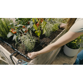 De Startset voor Verhoogde Bloembedden en Moestuinen van GARDENA is ideaal voor het betrouwbaar en waterbesparend bewateren van je verhoogde bloembed of moestuin. De set bevat alle onderdelen die je nodig hebt voor een waterbesparende bewatering tot wel 35 moestuinplanten, zoals tomaten of kruiden. Kwetsbare perkplanten en zaailingen hebben vooral veel aan druppelbewatering. Je kan de gebruiksklare set in slechts een paar eenvoudige stappen installeren. De onderdelen zijn gemakkelijk te koppelen en ontkoppelen. Dankzij de praktische herbruikbaarheid is het Micro-Drip-System duurzaam. De set voorziet de planten van de ideale hoeveelheid water, zelfs bij hoogteverschillen. Je kan de set uitbreiden met extra MDS-onderdelen. Gebruik bijvoorbeeld de Besproeiingscomputer Select (art. nr. 1891-20) voor een nog efficiëntere watertoevoer. Je kan een programma instellen en je bed wordt automatisch betrouwbaar bewaterd, zelfs als je er niet bent. Micro-Drip-System. Zo zorg je goed voor je planten maar bespaar je toch water. Makkelijk en nauwkeurig bewateren, om water en tijd te besparen.