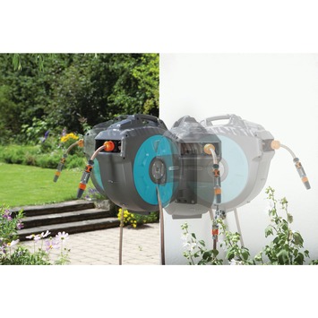 De Gardena wandslanghouder Roll up 25 m is een handige haspel met tuinslang voor grote of middelgrote tuinen. Door middel van een stalen veer wordt de slang automatisch opgerold. Deze haspel kan je bevestigen aan de muur en is 180° zwenkbaar. De geïntegreerde druppelstop voorkomt weglopen van water na gebruik. De slangenwagen bestaat uit 25 meter tuinslang, 2 meter aansluitslang, een tuinspuit en aansluitstukken. De waterstraal is traploos regelbaar van volle straal tot fijne sproeinevel. Kortom, de Gardena wandslanghouder Roll up 25 m is de ideale set voor het besproeien van de tuin en andere huishoudelijke klussen.