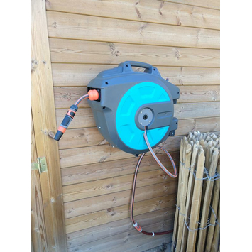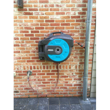 Wat een fijne wandslangenbox, hij stopt wanneer jij dat wilt en rolt zo gemakkelijk op. Het plaatsen aan de muur had mijn man zo gedaan! Hij is echt groot maar staat prachtig, en je kan hem laten draaien. Wij hebben spijt dat we hem niet eerder aangeschaft hebben, is een aanrader voor iedereen!!