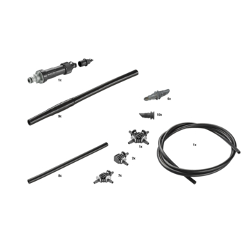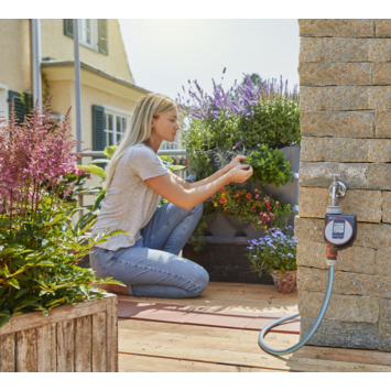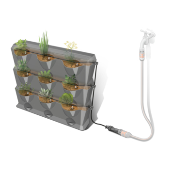 De GARDENA NatureUp! Bewateringsset Verticaal Waterkraan bevat alle onderdelen voor de probleemloze en waterbesparende bewatering van maximaal 9 verticale plantenbakken. De drukreducerende Master Unit is aangesloten op de kraan via het adapterstuk. Via dunne druppelbuizen worden de plantenbakken nauwkeurig bewaterd.