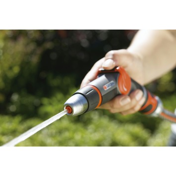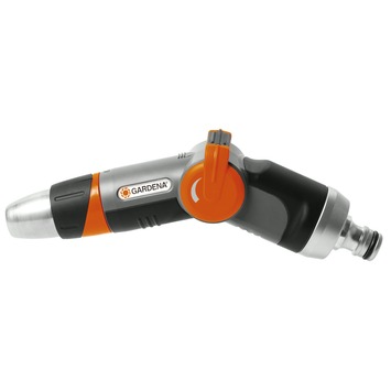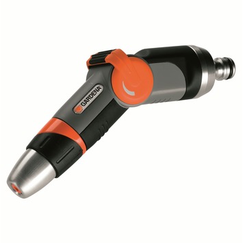 Het Gardena Premium reguleerbaar spuitpistool is een luxe sproeikop met een modern en aantrekkelijk design. Het spuitpistool is gemaakt van metaal en kunststof en heeft een softgrip handgreep zodat je hem comfortabel kan gebruiken en hij niet wegglijdt. De waterstraal is traploos regelbaar van volle straal tot fijne sproeinevel. Ook de hoeveelheid water is traploos regel- en afsluitbaar. Het Gardena Premium reguleerbaar spuitpistool is een ergonomische en robuuste waterspuit met een knap design.