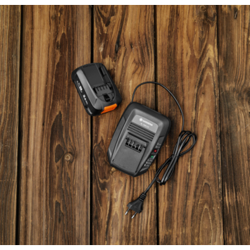 Deze startset bestaat uit de GARDENA snellader AL 1830 CV en de 2,5 Ah POWER FOR ALL-accu.