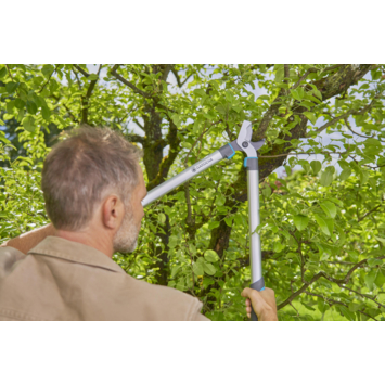 Sterke prestaties - eenvoudig te hanteren, de slimme oplossing voor krachtig snoeien. Met hoogwaardige precisiegeslepen stalen messen met PowerCoating, een snoeidiameter van 45 mm, een lengte van 680 mm en een lichtgewicht ergonomisch ontwerp maakt de GARDENA Takkenschaar EasyCut L korte metten met verse jonge houttakken. Krachtige snoeikracht De GARDENA Takkenschaar EasyCut L heeft precisiegeslepen messen van kwaliteitsstaal en maakt gebruik van hefboomwerking voor een krachtige snoeikracht en minder belasting voor de gebruiker bij het knippen van jonge houttakken. Intuïtieve ergonomie De GARDENA Takkenschaar EasyCut L met bypass-snede is ergonomisch ontworpen en licht van gewicht met slechts 1015 g. Dit komt door de aluminium handgrepen en ergonomische ovale buizen voor comfortabel en moeiteloos snoeien van jong hout. Nette en precieze sneden De precisiegeslepen messen van hoogwaardig staal zorgen voor een schone en precieze bypass-snede. Hierbij passeren beide messen elkaar in een schaarachtige snede, waardoor een grotere precisie mogelijk is en de tak zo min mogelijk wordt gekneusd en geplet, wat ideaal is voor vers groen hout. De soepel lopende scharnierverbinding zorgt voor een nette snede en een soepele actie bij het snoeien van takken van jong hout. De messen zijn behandeld met GARDENA's PowerCoating. Hierdoor zijn ze beschermd tegen corrosie, eenvoudig schoon te maken en snoeien ze efficiënter dankzij minder wrijving. Langdurige scherpte De precisiegeslepen messen van deze GARDENA EasyCut L takkenschaar worden in Duitsland gemaakt volgens de hoge normen van GARDENA en zijn ontworpen voor een langdurige scherpte en snoei-efficiëntie voor een lange levensduur zonder zorgen.