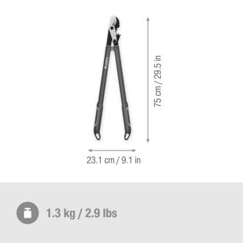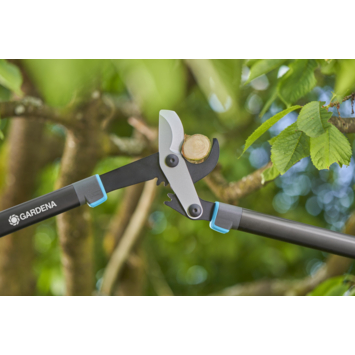 Sterke prestaties - eenvoudig te hanteren, de slimme oplossing voor krachtige snoei-uitdagingen. Met hoogwaardige stalen messen, geïntegreerde transmissie, een soepel lopende tandwielkast, een snoeidiameter van 50 mm en een ergonomisch ontwerp maakt de GARDENA EnergyCut takkenschaar met bypass-snede korte metten met jong hout en verdrievoudigt hij je snoeikracht. Krachtige snoeikracht De GARDENA Takkenschaar EnergyCut Pro L heeft twee precisiegeslepen messen van kwaliteitsstaal die aangedreven worden door een soepel lopende tandwielkast met geïntegreerde transmissie. De geïntegreerde transmissie zorgt voor een efficiënte krachtondersteuning en schakelt precies in wanneer de maximale kracht nodig is, wat de inspanning verkleint en de snoeikracht verdrievoudigt. Dit helpt om de zaagkracht te verdrievoudigen en tegelijkertijd de belasting te verminderen, waardoor ruwe kracht wordt gecombineerd met comfort en precisie. Intuïtieve ergonomie Ergonomisch ontworpen en licht van gewicht met slechts 1225 g. Dit komt door de aluminium handgrepen en ergonomische ovale buizen voor comfortabel en moeiteloos snoeien van jong hout. De EnergyCut Pro heeft ook een polsbuffer om de belasting verder te verminderen en de polsen van de gebruiker te beschermen. Schoon en precies snoeien De precisiegeslepen messen van kwaliteitsstaal zorgen voor een nettere bypass-snede en gezondere planten. Bij bypass-snoeien passeren beide messen elkaar in een schaarachtige snede. Dit zorgt voor een schonere en preciezere snede die kneuzingen en verbrijzeling van de tak minimaliseert, wat het ideaal maakt voor jong hout. Deze GARDENA Takkenschaar EnergyCut Pro L is ook voorzien van GARDENA's PowerCoating voor eenvoudiger schoonmaken, efficiënter snoeien, verbeterde mesbescherming en gezondere planten. Langdurige scherpte De precisiegeslepen messen worden in Duitsland gemaakt volgens de hoge normen van GARDENA en zijn ontworpen voor een langdurige scherpte en snoei-efficiëntie voor een lange levensduur zonder zorgen.