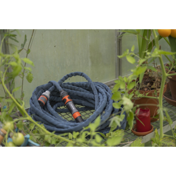 Gebruik de Textielslang Liano™ Xtreme 20 m Set van GARDENA voor langdurige en uitdagende bewatering. Met een totale lengte van 20 m is de textielslang met een diameter van 13 mm (1/2") ideaal voor middelgrote tuinen. De Original GARDENA System-accessoires Liano™ Slangstuk en Liano™ Waterstop zijn al voorgemonteerd op de Liano™ Xtreme. Daarnaast bevat de set twee Kraanstukken en een Reinigingspistool. Doordat een van de twee kraanstukken een reduceerstuk bevat, kan je de textielslang aansluiten op drie verschillende kraanformaten. De Liano™ Xtreme dankt zijn uitstekende prestaties, flexibiliteit en hoge bestendigheid tegen externe invloeden aan de zeer flexibele PVC-binnenslang en de innovatieve buitenslang, gemaakt van extreem bestendig textiel. Dit maakt hem duurzaam en klaar voor de veeleisende uitdagingen in je tuin. Hij overwint ruig terrein, keien, rozendoorns of slepen langs ruwe muren zonder te knikken of te blijven haken. Je kan de Liano™ Xtreme langdurig comfortabel gebruiken, dankzij de aangename, slipvaste textuur en het laag gewicht. De vuilafstotende textielslang is tot wel 50% lichter dan conventionele PVC-slangen. Na de bewatering kan je de Liano™ Xtreme ruimtebesparend opbergen, bijvoorbeeld op een plank of in een schuurtje, dankzij zijn goede flexibiliteit. Hij past zich aan aan de beschikbare opbergruimte. De slang is bestand tegen een maximale druk van 35 bar. Dankzij zijn uv- en vorstbestendigheid kan hij het hele jaar door in de tuin blijven. De textielslang is vrij van schadelijke stoffen zoals ftalaten (<0,1%), maar ook cadmium, lood en barium (<0,1%). Na registratie op gardena.com/registration binnen 3 maanden na aankoop geeft GARDENA je een lange fabrieksgarantie van 30 jaar op de hoogwaardige Textielslang Liano™ Xtreme, die is geproduceerd in Europa. Ontwikkeld voor het extreme. Ontworpen voor het alledaagse. Liano™ Textielslangen.