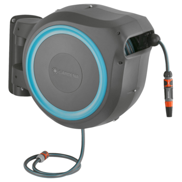 Bewatering die altijd gebruiksklaar is: Met de wandslangenbox RollUp M/L is het bewateren van uw tuin een waar genoegen. Deze wandslangenbox bespaart u het moeizame oprollen, uw handen blijven schoon en de slang raakt niet in de knoop. De tuinslang, die aan elke muur kan worden bevestigd, is veilig weggeborgen en zeer ruimtebesparend. Vóór gebruik trekt u de slang van 25 meter uit tot de gewenste lengte. Zodra u stopt, grijpen de extra korte vergrendelingspunten vast en zetten ze de tuinslang vast op de gewenste lengte. Dankzij de handige muurbeugel kan de slangenhouder 180 graden worden gedraaid en uw bewegingen in de tuin ongemerkt volgen. Hierdoor kunt u uw bewateringswerkzaamheden eenvoudig uitvoeren, hebt u maximale bewegingsvrijheid en knikt de slang niet. De slang hoeft niet te worden gebogen of gedraaid als u hem wilt oprollen: lichtjes trekken aan het uiteinde van de slang is voldoende om de vergrendeling los te maken. De hoogwaardige stalen veer in de box rolt de slang automatisch, betrouwbaar en gelijkmatig voor u op. De innovatieve RollControl-technologie zorgt voor veilig en gecontroleerd oprollen. Dankzij de geïntegreerde slanggeleider ontstaan er geen knopen of knikken bij het oprollen van de slang, waardoor schade aan de tuinslang wordt voorkomen. Met de kraan- en slangkoppelingen van het Original GARDENA System kunt u de slang flexibel verlengen of andere GARDENA opzetstukken bevestigen. Uw GARDENA slangopzetstukken zijn altijd klaar voor gebruik. Ze kunnen onder de muurbeugel worden bevestigd en daar worden opgeborgen om ruimte te besparen. Het hoogwaardige materiaal is bestand tegen UV, vorst en andere weersomstandigheden en kan daarom het hele jaar door worden gebruikt. De box is voorzien van diefstalbeveiliging. De slangenbox wordt geleverd met alle vereiste aansluitonderdelen: een muurbeugel, een aansluitslang, alle benodigde Original GARDENA System en montageonderdelen en een mondstuk met twee verschillende sproeiopties. GARDENA geeft vijf jaar garantie op de hoogwaardige slangopslag.
