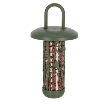 Deze gerecyclede notensilo inclusief pinda's is een milieuvriendelijke oplossing voor het voederen van vogels in jouw tuin. De silo is gemaakt van gerecycled materiaal en gevuld met pinda's. Het biedt de perfecte balans tussen duurzaamheid en diversiteit.
