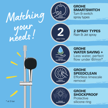- Handdouche met 2 straalsoorten: pas de straal aan naar jouw voorkeur