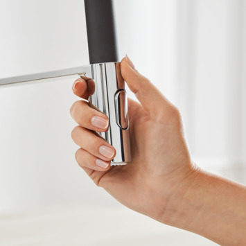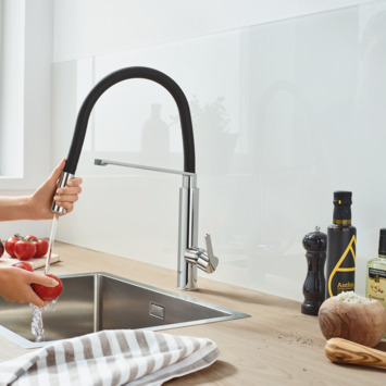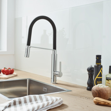 Deze Grohe Feel is een verchroomde keukenkraan die je ook in Supersteel (RVS) kunt kopen bij GAMMA. De kraan heeft een los te koppelen uitloop die door het EasyDock systeem met magnetische sluiting ook weer eenvoudig terug te plaatsen is. Met de 360 graden draaibare uitloop kun je eenvoudig grote pannen of emmers vullen en de kraan heeft 2 straalsoorten ter beschikking. De kop van de kraan heeft silicone SpeedClean sproeigaatjes die met een vingerveeg kalkvrij te maken zijn. De bediening van de kraan beschikt over Grohe SilkMove keramische schijven. Die zorgen ervoor dat je de straal en de temperatuur met precisie kunt bedienen. Tot slot heeft de kraan een Grohe StarLight verchroomde afwerking wat deze Grohe Keukenkraan Feel met Spoelkraan Chroom ook nog eens krasvast maakt.
