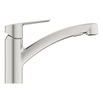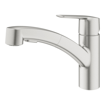 Met deze GROHE Start keukenkraan in supersteel (RVS kleur) heb je volledige grip op elke keukentaak. De kraan is gerestyled in een nieuw design, waardoor je geniet van nog meer gemak en comfort. De lage uitloop is uitgerust met een handige Pull-Out Dual Spray, die totale flexibiliteit biedt in de keuken. Of je nu groente wast of pannen afspoelt; met slechts één druk op de knop regel je precies de straalsoort die je nodig hebt. Zo kun je kiezen voor een spatvrije laminaire straal en een Jet Spray met een krachtige waterstraal. De uitloop kun je flexibel 90° draaien en de GROHE SilkMove cartouche garandeert een soepele bediening gedurende de hele levensduur van de kraan. Daarbij biedt deze keukenmengkraan schoon drinkwater dankzij GROHE Zero, die ervoor zorgt dat het kraanwater niet in aanraking komt met lood en nikkel. Ook ga je duurzaam om met je waterverbruik via de instelbare debietbegrenzer én is de keukenkraan veilig in gebruik voor het hele gezin dankzij de geïntegreerde temperatuurbegrenzer. De matte afwerking in supersteel is slijtvast en beschermt de eengreepskraan optimaal tegen krasvorming. Met de handige GROHE FastFixation Plus montageset installeer je de GROHE Start keukenkraan in een handomdraai én zonder gereedschap! Let op: een druk van minimaal 1,0 bar wordt voor deze kraan geadviseerd.