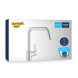 Maak je keuken mooier met behulp van de vorm van de GROHE Start eengreeps mengkraan. Deze QuickFix bestseller heeft een hoge U-uitloop en bevat allerlei slimme functies. Deze klassieker is aangepast om te voldoen aan de eisen van moderne keukens, met een slank, hedendaags profiel en een 35% hogere uitloop voor meer gebruikerscomfort. Deze keukenkraan is ontworpen voor eengatsinstallatie en de hoge uitloop draait soepeltjes 150°, wat meer flexibiliteit biedt bij de spoelbak zonder dat je bang hoeft te zijn voor spatten. In de kraan zelf biedt de GROHE SilkMove cartouche technologie voor een soepele en nauwkeurige bediening en GROHE Zero geïsoleerde binnenwateren zorgen ervoor dat je drinkwater lood- en nikkelvrij is. Een instelbare doorstroombegrenzer bespaart water en geld, terwijl een geïntegreerde temperatuurbegrenzer verbranding van heet water helpt voorkomen. De glanzende GROHE StarLight chromen afwerking is slijtvast en heeft een schitterend oppervlak dat lang meegaat. Ontworpen voor eengatsinstallatie en inclusief de QuickGuide en QuickVideo die je vindt door de QR-code te scannen. Daarnaast kan met het gereedschapsloze QuickMount-systeem de kraan snel worden gemonteerd. Voor deze kraan wordt een druk van minimaal 1,0 bar aanbevolen.