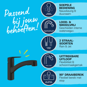Grohe keukenmengkraan Start Flow zwart uittrekbaar