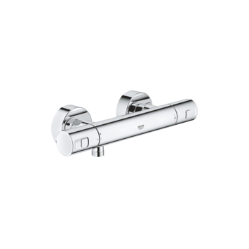 De Grohe Thermostatische Douchekraan Precision Joy Chroom 15 cm is geschikt voor moderne badkamers waar de hart-op-hart afstand tussen de koud- en warmwaterleiding 150 mm is. Deze thermostatische douchekraan zorgt voor een heerlijke douche met een constante watertemperatuur, ook al zijn er fluctuaties in de waterdruk. Met de SafeStop knop op 38°C voorkom je dat je kinderen de temperatuur verhogen, terwijl je dankzij de volumegreep met GROHE EcoButton tot 50% water kunt besparen. De kraan is voorzien van GROHE TurboStat: hiermee wordt snel en continu de gewenste temperatuur bereikt.