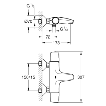 - 150 mm hartafstand
