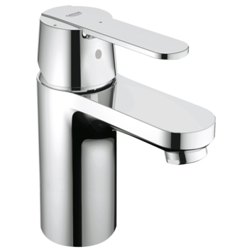 De GROHE wastafelkraan Get S-size met hendel en afvoerplug Chroom is een kleine, handige wastafelkraan die geleverd wordt met een afvoerplug met kliksysteem. Met de eenhendelbediening draai je eenvoudig met 1 hand de kraan naar de gewenste temperatuur en waterstraal. Het GROHE SilkMove ES (Energy Saving) binnenwerk met keramische schijven zorgt daarbij voor een soepele en nauwkeurige draaiing en is bovendien ook nog energiebesparend doordat de kraan alleen koud water laat stromen in de middenstand van de hendel. Met de GROHE EcoJoy waterbesparende toepassing gebruik je maximaal 5,7 l/min. In combinatie met de instelbaarheid van de waterstroom is de minimale hoeveelheid water slechts 2,5 l/min! De meegeleverde afvoerplug zet je met een vingerdruk open of dicht. Het monteren van de kraan doe je extra snel en eenvoudig zelf met de QuickFix snelmontage en de meegeleverde flexibele aansluitslangen, afvoerplug, bevestigingsmateriaal en montagehandleiding. Deze wastafelkraan is met zijn rechte uitloop van 14 cm hoog een kleine, functionele en duurzame aanwinst in je badkamer. De rechte uitloop, strakke vormgeving en glanzend chromen afwerking passen perfect in je moderne badkamerinterieur! De kraan is ook in een mat witte uitvoering verkrijgbaar. Zo kies je altijd de juiste kleur bij jouw stijl. Als je deze kraan koopt, dan profiteer je van 5 jaar fabrieksgarantie.