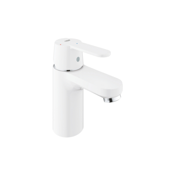 De GROHE wastafelkraan Get S-size met hendel en afvoerplug Wit is een kleine, handige wastafelkraan die geleverd wordt met een afvoerplug met kliksysteem. Met de eenhendelbediening draai je eenvoudig met 1 hand de kraan naar de gewenste temperatuur en waterstraal. Het GROHE SilkMove ES (Energy Saving) binnenwerk met keramische schijven zorgt daarbij voor een soepele en nauwkeurige draaiing en is bovendien ook nog energiebesparend doordat de kraan alleen koud water laat stromen in de middenstand van de hendel. Met de GROHE EcoJoy waterbesparende toepassing gebruik je maximaal 5,7 l/min. In combinatie met de instelbaarheid van de waterstroom is de minimale hoeveelheid water slechts 2,5 l/min! De meegeleverde afvoerplug zet je met een vingerdruk open of dicht. Het monteren van de kraan doe je extra snel en eenvoudig zelf met de QuickFix snelmontage en de meegeleverde flexibele aansluitslangen, afvoerplug, bevestigingsmateriaal en montagehandleiding. Deze wastafelkraan is met zijn rechte uitloop van 14 cm hoog een kleine, functionele en duurzame aanwinst in je badkamer. De rechte uitloop, strakke vormgeving en mat witte afwerking passen perfect in je moderne badkamerinterieur! De kraan is ook in een chromen uitvoering verkrijgbaar. Zo kies je altijd de juiste kleur bij jouw stijl. Als je deze kraan koopt, dan profiteer je van 5 jaar fabrieksgarantie.