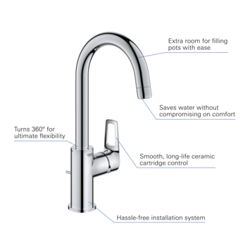 Grohe wastafelkraan Quickfix Start Loop L chroom hoge uitloop met waste