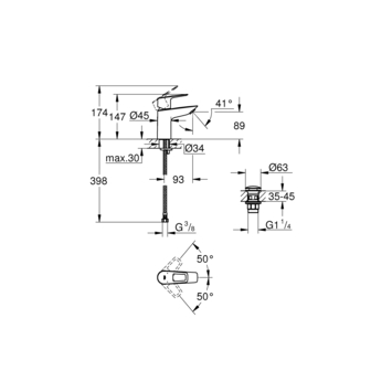 Grohe wastafelkraan Quickfix Start Loop S chroom push open