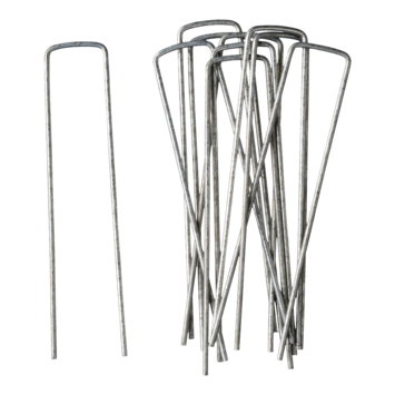 De gronddoekpennen van Nature zijn geschikt voor het vastzetten van gronddoek, antiworteldoek en dergelijken. De gronddoekpennen worden daarom ook wel antiworteldoekpennen genoemd. Maar ook kunstgras, landbouwplastic, slikranden, binnententen en andere doeken zet je ermee vast. De metalen gronddoekpennen zijn 14cm hoog, 3cm breed en hebben een dikte van 3mm. In deze set zitten 10 gronddoekpennen. Je steekt de pennen door het doek heen helemaal in de grond en zorgt daarmee voor een stevige bevestiging van het doek. Je voorkomt daarmee dat wind vrij spel krijgt en het doek of zeil wegwaait.