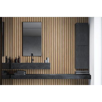 Dit wandpaneel Element Linio is gemaakt van kunststof, maar heeft de uitstraling van een houten lattenwand. Het paneel is 3D gedrukt en bedekt met vernis. Hierdoor lijkt het net van echt hout gemaakt. Een paneel is 260 cm hoog en 37,5 cm breed. Dankzij dit grote formaat, kun je snel je muren bedekken, ongeacht het te bedekken oppervlak.