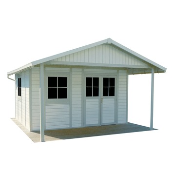 Het Deco tuinhuis 20 van Grosfillex heeft alles wat een tuinhuis moet hebben. Het huisje heeft voldoende opbergruimte en kan zelfs gebruikt worden als extra werkruimte, speelkamer of poolhouse. Het huisjemet afdak is gemaakt uit witte PVC met een grijs-groene afwerking en metalen ramen. PVC is een hoogwaardige kunststof die niet kan schimmelen of rotten en makkelijk te reiningen is. De robuuste deuren zijn voorzien van een raam, een klink en een stevig slot. Op die manier kan je met een gerust hart al je lievelingsmateriaal stockeren. Dit model heeft een oppervlakte van bijna 11 vierkante meter.