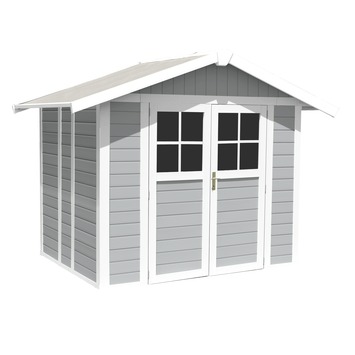 De mooie Deco tuinhuizen van Grosfillex zijn speciaal ontworpen om als werk- en opbergruimte dienst te doen. Het stijlvolle design zorgt er bovendien voor dat het huisje niet misstaat in je tuin. Het huisje is gemaakt uit grijze PVC met een witte afwerking en metalen ramen. PVC is een hoogwaardige kunststof die niet kan schimmelen of rotten en makkelijk te reiningen is. De robuuste deuren zijn voorzien van een raam, een klink en een stevig slot. Op die manier kan je met een gerust hart al je lievelingsmateriaal stockeren. Dit model heeft een oppervlakte van bijna 5 vierkante meter.