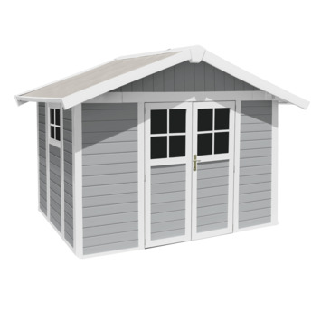 De mooie Deco tuinhuizen van Grosfillex zijn speciaal ontworpen om als werk- en opbergruimte dienst te doen. Het stijlvolle design zorgt er bovendien voor dat het huisje niet misstaat in je tuin. Het huisje is gemaakt uit donkergrijze PMMA met een witte afwerking en metalen ramen. PMMA is een hoogwaardige kunststof die niet kan schimmelen of rotten en makkelijk te reiningen is. De robuuste deuren zijn voorzien van een raam, een klink en een stevig slot. Op die manier kan je met een gerust hart al je lievelingsmateriaal stockeren. Dit model heeft een oppervlakte van 7 vierkante meter.