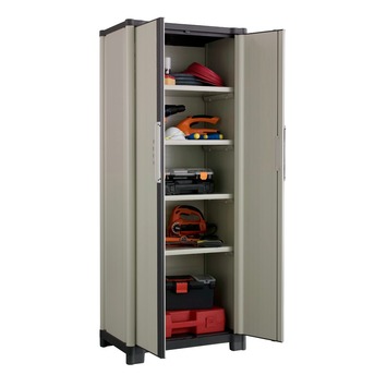 De Workline kast (5 l) van Grosfillex is in alle omstandigheden de ideale opbergkast. De grijze en antracietkleurige kunststof is namelijk vocht- en schimmelbestendig. Bovendien kan je de kast makkelijk monteren en onderhouden. Je kan meerdere kasten naast elkaar plaatsen in functie van je beschikbare ruimte. De kast staat op pootjes, zodat je de vloer makkelijk kan poetsen.