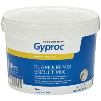 Plamuur je Gyproc-klus met deze Plamuur Mix (5 kg). Het is een gebruiksklare pasta voor het egaliseren van oneffen Gyproc-ondergronden vooraleer je gaat schilderen of behangen. Let wel: het product is enkel geschikt voor binnengebruik.