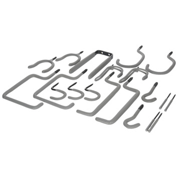 Duraline hakenset voordeelpak bevat diverse soorten haken. Stuk voor stuk handige ruimtewinners voor de garage, zolder of bijkeuken. Met deze haken ruimt u uw spullen netjes op en creëert u eenvoudig extra opbergruimte.