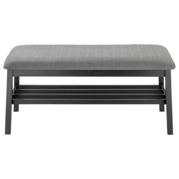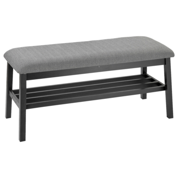 Halbank Lynn hout gestoffeerd zwart grijs is een zwart/grijskleurige halbank gemaakt van houten, ook de 4 poten waar die op steunt zijn van hout gemaakt. De halbank Lynn is een zachte en comfortabele halbank waar je op kunt zitten om meerdere dingen uit te voeren zoals bijvoorbeeld: je schoenen aan of uit te doen, in een wachtkamer,.. De halbank Lynn past mooi in elke hal. De halbank Lynn is 47 cm hoog, 40 cm diep en 100cm breed. De zithoogte is 47 cm, de zitdiepte is 40 cm en de zitbreedte is 100cm.