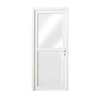 Een beglaasde buitendeur? Ook daarvoor kan je terecht bij GAMMA! Deze stevige, stijlvolle buitendeur is gemaakt uit witte pvc en afgewerkt met 2 halve glazen. Inclusief lijsten, scharnieren, klink en slot. Kortom: kant- en-klaar om te installeren in je buitenmuur! Tip: deze deur draait links open, maar is ook rechts open verkrijgbaar.
