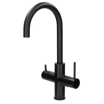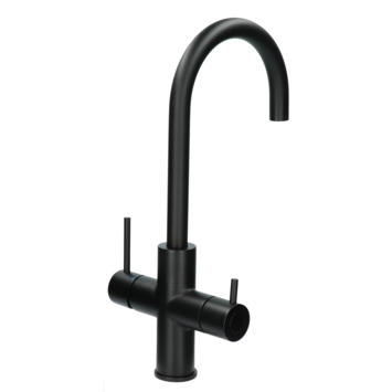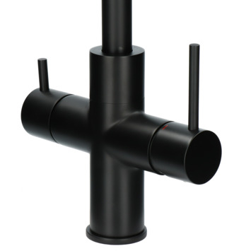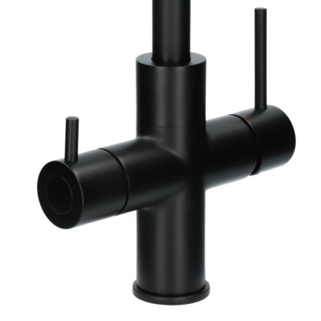 Met de Handson kokenwaterkraan Ace met hendel Zwart hoef je nooit meer te wachten tot je water kookt! Kokend water is direct beschikbaar uit de 3-in-1 kokendwaterkraan. Uit één en dezelfde kraan haal je naar keuze 100°C kokend water, kraanwarm water of koud water. Met de rechter hendel draai je eenvoudig met 1 hand de kraan naar de gewenste temperatuur tussen koud en kraanwarm. De linker hendel is voor direct kokend water. Een kop thee zetten is in een handomdraai gebeurd! En aan de kinderveiligheid is ook gedacht: de kokendwaterhendel is alleen om te draaien als je de linkerknop ingedrukt houdt. De hendels draaien soepel en nauwkeurig door de keramische schijven, die bovendien weinig onderhoud nodig hebben. De meegeleverde roestvrijstalen boiler heeft een inhoud van 4 liter. Handig als je veel kokend water nodig hebt, bijvoorbeeld bij het koken. Wil je een grote pan vullen? De hoge uitloop op 29 cm maakt dat mogelijk. De uitloop kun je ook 360° draaien, zo maak je eenvoudig plaats in je gootsteen. Met deze kraan haal je niet alleen veel gemak en comfort in huis, ook is het met zijn elegant ontwerp en mat zwarte afwerking een verrijking in elke industriële of landelijke keuken. De kokendwaterkraanset wordt geleverd met een kokendwaterkraan, 3 flexibele aansluitslangen, RVS waterboiler van 4 liter, aanluitmateriaal en montagesleutel. Met de montagehandleiding is de set makkelijk te installeren. Let er altijd op dat je de boiler eerst laat vollopen met water, voordat je deze aanzet. Gebruik alleen water en een zachte doek om de kraan schoon te maken. Gebruik geen schurend, bijtend, azijnhoudend of agressief schoonmaakmiddel. Besluit je deze kokendwaterkraan te kopen? Dan kun je ook profiteren van 2 jaar fabrieksgarantie.