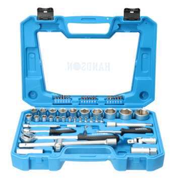 De Handson dopsleutelset met 1/4''- en 1/2"-dopsleutels van 4mm tot 32mm bestaat uit 55 delen. De set bevat 23 dopsleutels, 2 bougiesleutels, 18 dopsleutelbits en diverse accessoires, zoals ratels, knikstukken en verlengstukken. De dopsleutels uit deze set zijn gemaakt van hoogwaardig chroom-vanadiumstaal. De stevige dopsleutels hebben zowel een 1/4inch-verbinding, oftewel een verbinding van 6,3mm, als een 1/2inch-verbinding, oftewel een verbinding van 12,7mm. De dopsleutels uit de set hebben een sleutelwijdte variërend van 4mm tot 32mm. In de bijbehorende handige cassette berg je alle dopsleutels, bits en accessoires goed en overzichtelijk op. Kortom, met de dopsleutelset van Handson, heb je altijd de juiste dopsleutel bij de hand voor het los- of vastdraaien van iedere moer op iedere plek.