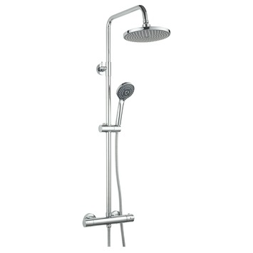 De Handson Regendoucheset Delphin heeft een in hoogte verstelbare handdouche en een vaste, brede regendouche van 22 cm. De douchestang van 75 cm, doucheslang van 150 cm en de thermostatische douchekraan met keramische schijven maken het douchesysteem compleet. De grote vaste regendouchekop met een diameter van 22 cm zorgt voor een heerlijke regendouche ervaring. De houder van de handdouche kun je in hoogte verstellen en is zwenkbaar. De handdouche heeft 3 straalstanden, waardoor je zelf de ideale straalsterkte kan instellen. Met de omstelknop wissel je eenvoudig tussen regendouche en de handdouche. Beide douchekoppen hebben siliconen sproeikopjes waaraan kalk zich moeilijk hecht. Zo kun je vuil en kalk makkelijk met de vingers afvegen. Met de thermostatische douchekraan kun je de door jou gewenste watertemperatuur instellen. De keramische schijven in het binnenwerk van de kraan zorgt voor minder kalkaanslag en slijtage ten opzichte van een binnenwerk met rubber afdichtingen. Deze doucheset met kraan heeft een moderne uitstraling door het platte design en de chromen afwerking. Bij de duurzame doucheset wordt een waterbesparende ring geleverd die je naar keuze kunt plaatsen tussen de douchekop en -slang. Met de ring bespaar je tot 40% water. Het systeem is eenvoudig te bevestigen dankzij het meegeleverde bevestigingsmateriaal. Op de douchesets, -koppen en -slangen van Atlantic heb je 3 jaar garantie.