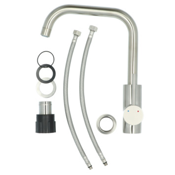 De kraan heeft een standaard garantie van 5 jaar. Het monteren kun je zelf, want de benodigde bevestigingsmaterialen zijn inbegrepen.