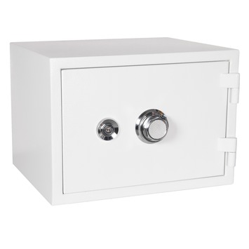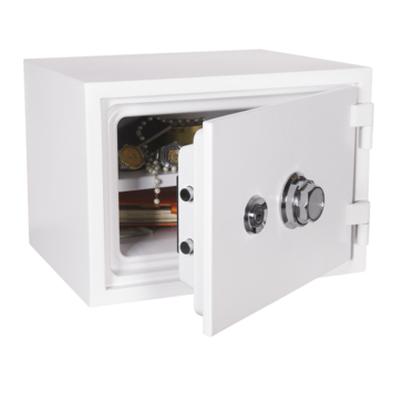 De HANDSON brandwerende kluis is een zeer slimme inverstering. De kluis is dubbelwandig en heeft een sleutel- en mechanisch cijferslot. De kluis is brandbestendig tot max. 60 minuten. 1050 °C. Papieren blijven beschermt, de binnentemperatuur wordt door de kluis namelijk koel gehouden. Door de kluis extra te beveiligen kan je deze verankeren door de verankeringsgaten en het hiervoor meegeleverde bevestigingsmateriaal. De wanddikte is 50 mm en de wanddikte van de deur is 60 mm. De kluis heeft een witte kleur. De inhoud van de kluis is 12 liter. Kortom: deze kluis is bestendig tegen allerlei soorten gevaren en houd je je voorwerpen veilig.