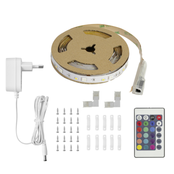 Handson LED strip met RGB kleuren en warmwit IP20 5 meter incl. afstandsbediening
