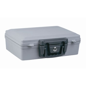Deze dubbelwandige mobiele kluis is een praktische en handige opbergkist waar je jouw waardevolle spullen in kan opbergen. Deze kluis heeft een handvat en is brandwerend waardoor hij een half uur lang temperaturen kan weerstaan tot 845 graden celsius. De mobiele kluis is gemaakt van staal en wordt geleverd met 2 sleutels.