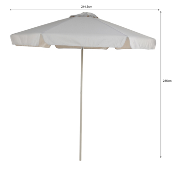 Ben jij op zoek naar een fijne parasol voor je tuin of terras? De Handson parasol Girona in een zachte beige kleur is precies wat je nodig hebt! Met een diameter van 250 cm biedt deze stokparasol voldoende schaduw voor jou en je vrienden tijdens die warme zomerdagen. Het handmatige uitklapmechanisme is super eenvoudig in gebruik, zodat je snel kunt genieten van de schaduw. Gemaakt van polyester en met een stevige metalen constructie, is deze parasol niet alleen functioneel, maar ook stijlvol. Met een hoogte van 235 cm en een breedte en diepte van 250 cm past deze parasol perfect in elke tuin of op elk balkon. Geniet van een heerlijke zomerdag zonder je zorgen te maken over de zon. Voeg deze parasol toe aan je buitenruimte en maak je zomer compleet!