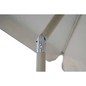 De parasol is eenvoudig uit te klappen, geen opwindmechanisme nodig