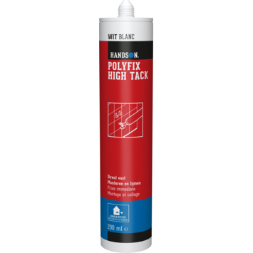 Handson Polyfix High Tack kit wit 290 ml is ontworpen voor situaties waarin materialen meteen stevig moeten vastplakken. De hoge aanvangshechting zorgt voor direct grip, terwijl de hybride samenstelling zorgt voor een sterke eindhechting. De kit werkt op vrijwel alle veelvoorkomende materialen en kan ook gebruikt worden bij licht vochtige ondergronden.