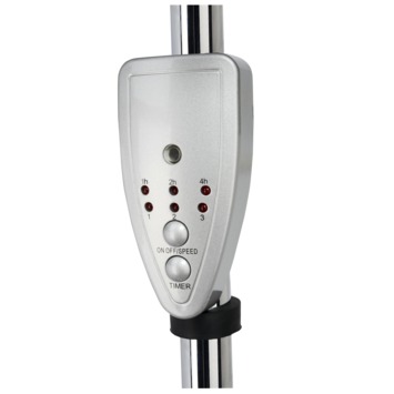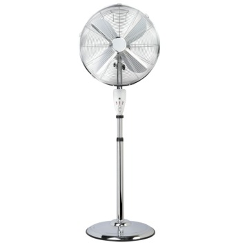 Een ventilator is de oplossing voor de warme dagen! Deze stijlvolle ventilator Melbourne van het merk Handson heeft 3 standen en is vanuit je luie zetel/bed te bedienen met een afstandsbediening. Ook heeft de ventilator een draaifunctie en een timer die je kunt instellen zodat de ventilator zich uitschakelt wanneer jij dat wil. Jij kiest zelf hoelang en op welke stand jij jouw huis gaat koelen. Deze chromen statiefventilator met een diameter van 40 cm is stijlvol en past in elk interieur. De ventilator heeft een snoer van 1.80 meter en een maximaal vermogen van 50 Watt.